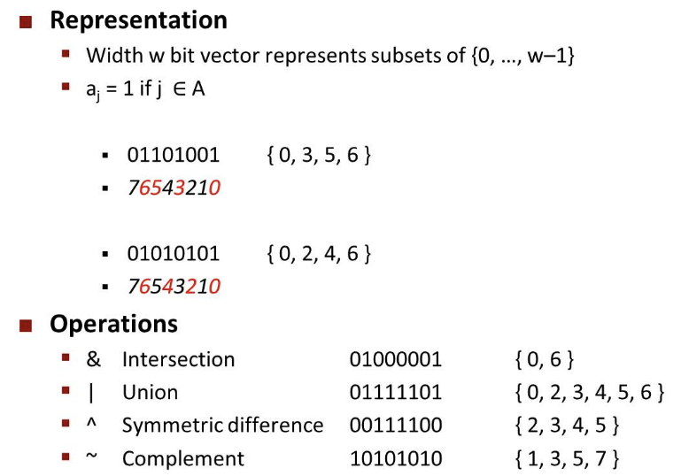 bit 및 bit 연산을 이용해서 Set를 표현하고 조작할 수 있다. (비트 마스킹과 유사한 방식)