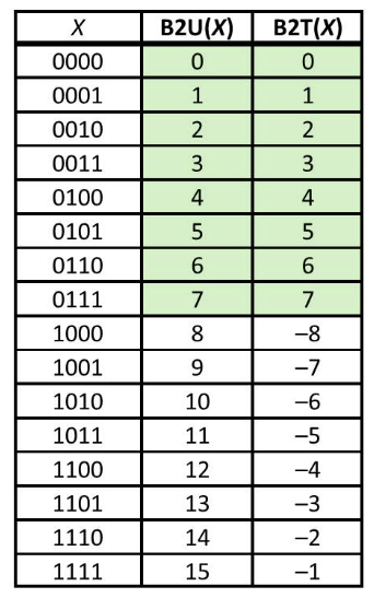 - 음수에서는 T2U 과정에서는 +16, U2T 과정에서는 -16을 해준다 (4비트라고 가정)