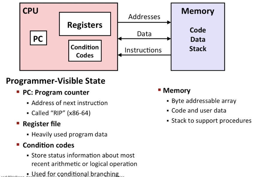 Architecture (ISA) : The parts of a processor design that one needs to understand or write assembly/machine code
